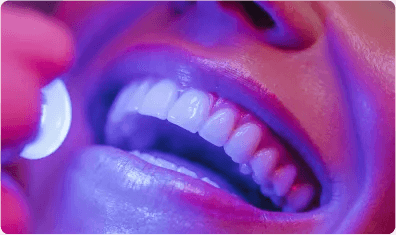 Application of protective gum gel, followed by whitening gel and LED activation for fast, effective brightening.